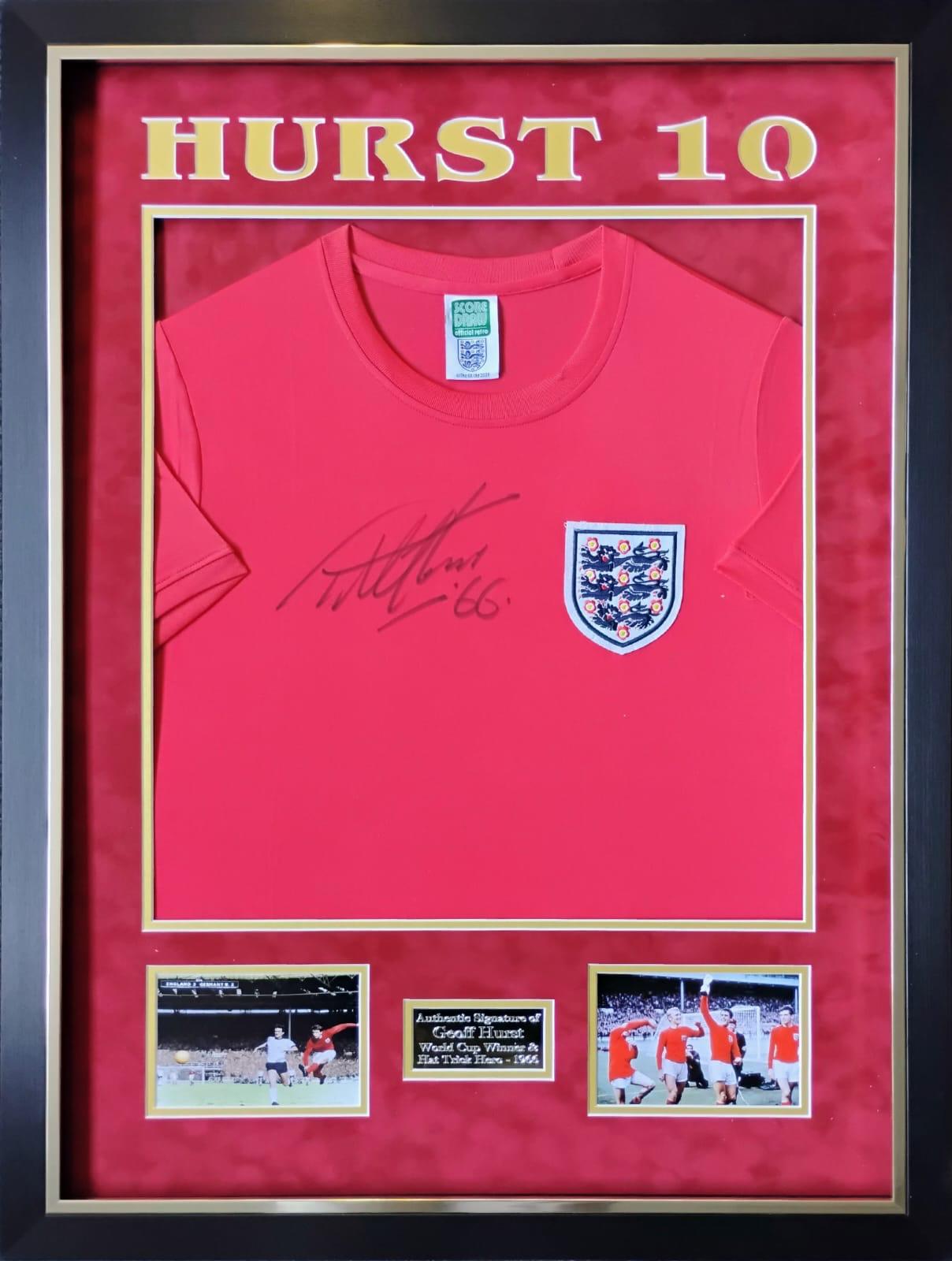 Step back into the golden era of English football with this hand-signed red England 1966 World Cup shirt, autographed by the legendary Sir Geoff Hurst β the only player to ever score a hat-trick in a World Cup Final. β½π¬π§