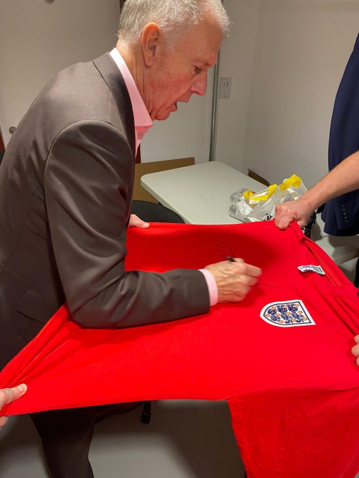 Sir Geoff Hurst Hand-Signed Red England 1966 Shirt